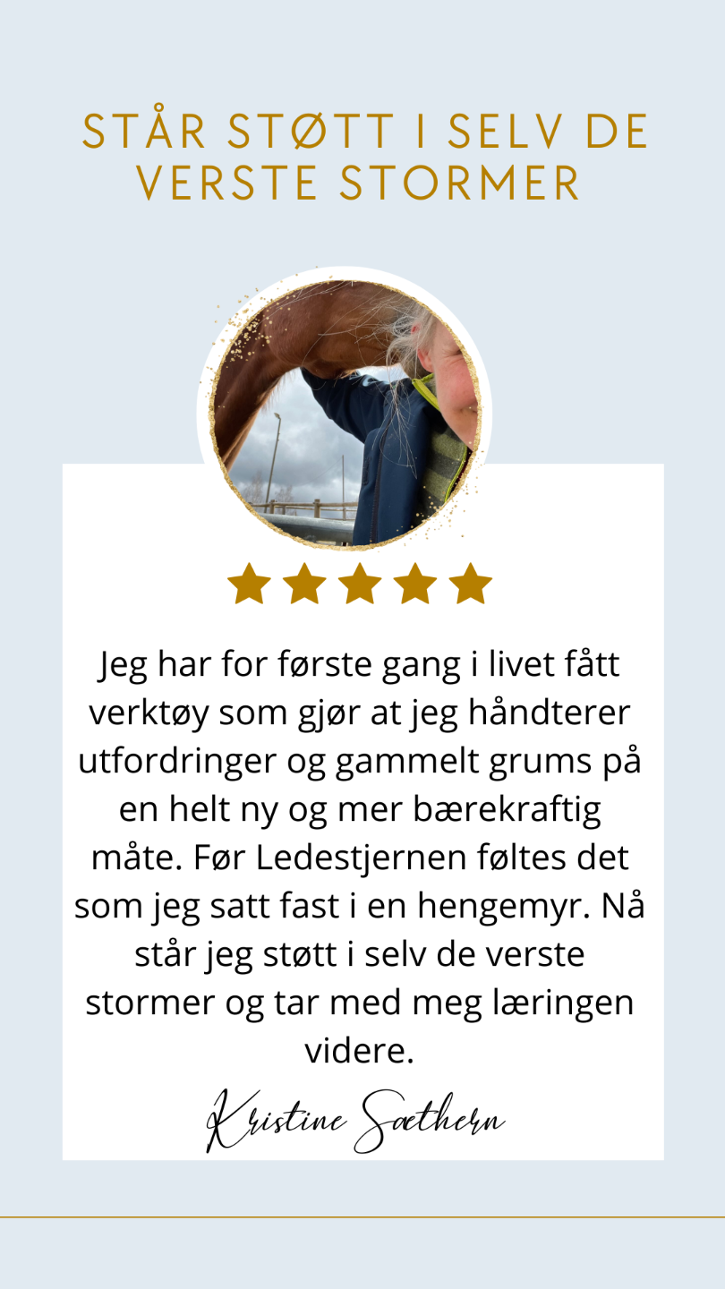 Ledestjernen er mitt hjertebarn og mĂ„ten jeg kan hjelpe deg i en genialt, skreddersydd gruppe-setting hvor flere gĂ„r samme veien, og vi hjelper, lĂŠrer og inspirerer hverandre. I dette programmet har jeg oppsummert verktĂžyene jeg har lĂŠrt over flere titalls Ă„r og testet ut pĂ„ flere tusen kunder, og jeg vet at det du vil lĂŠre og sitte igjen med etter kurset, vil endre livet ditt. Om du setter lĂŠringen ut i praksis selvfĂžlgelig, og det vet jeg jo du vil. Hverken du eller jeg vil tulle med tid og penger.Â