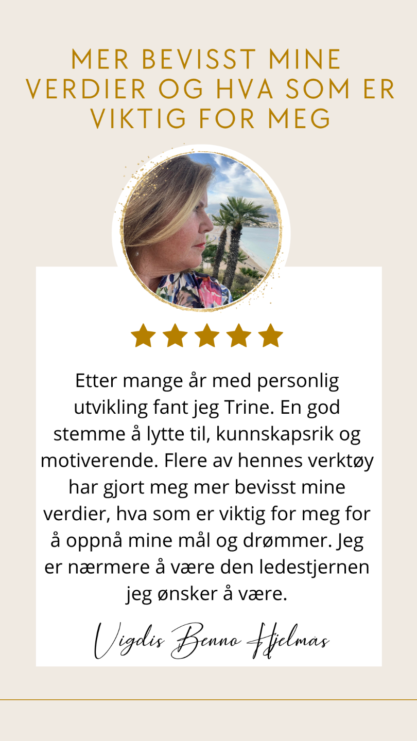 Jeg heter Trine og er en klarsynt coach som med fokus pĂ„ mentaltrening og fĂžlelsesmessig mestring har fĂ„tt hjelpe ti-tusenvis de siste 25 Ă„rene til Ă„ stĂ„ sterkere i seg selv og fĂ„ til det de drĂžmmer om.Â